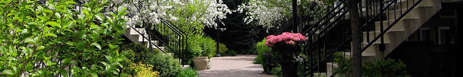 Beautiful landscaping: The Townes site contains a central walkway finished with interlocking stone, as well as full landscaping and gardens including flowers, mature trees and bushes to offer privacy and green space.